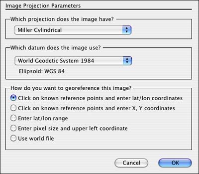 Select among 38 projections, 230 datums, and 5 georeference methods!